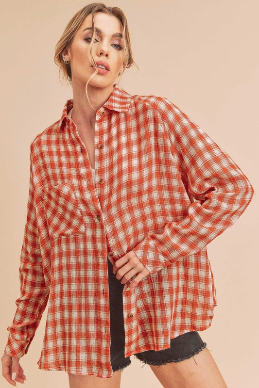 Timeless and essential Heidy button-down shirt featuring an oversized fit with button front and chest pockets.