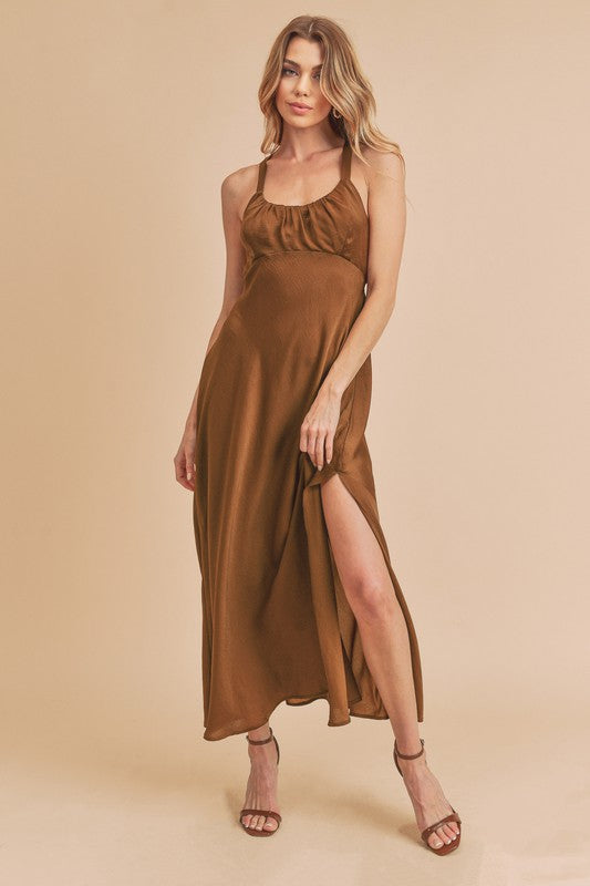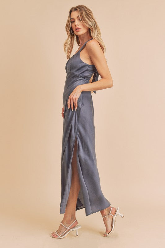 Elegant Mae Dress flaunts a figure-flattering silhouette crafted from a light and smooth fabric that is lightweight, stiff yet soft and feels delicate.
