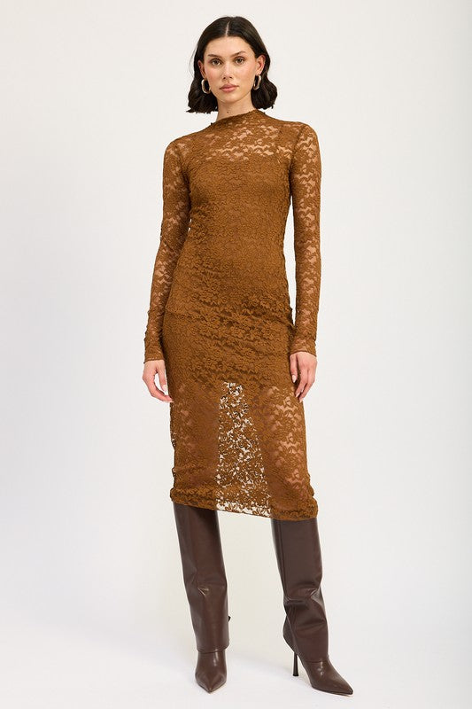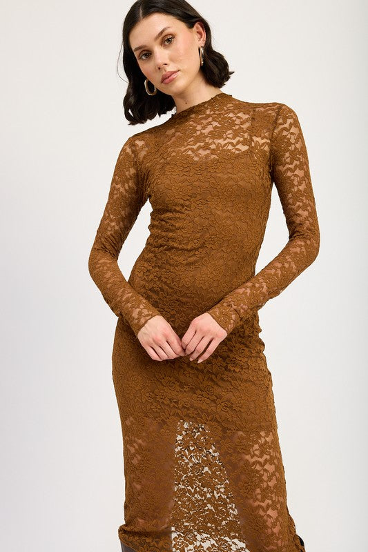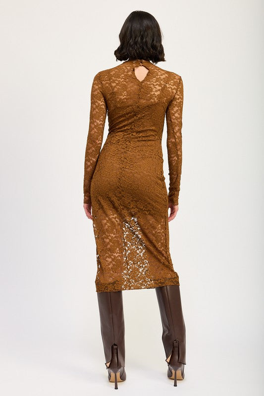 MOCK NECK MIDI LACE DRESS